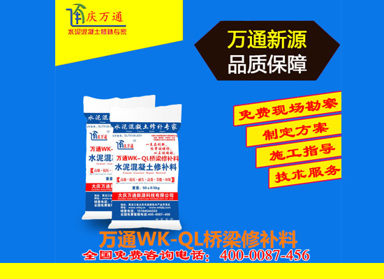 大慶萬(wàn)通新源科技有限公司獨(dú)有的混凝土路面高強(qiáng)速補(bǔ)料,是水泥混凝土路面病害修復(fù)的好材料。疲勞、凍融循環(huán)、彎曲壓力、滲水和基層破壞等原因都會(huì)引起水泥路面的破損,從而帶來(lái)高昂的維護(hù)費(fèi)用。與以往的剛性修補(bǔ)方法不同,混凝土水泥路面維修速補(bǔ)膠提供了一種獨(dú)特的柔性修補(bǔ)產(chǎn)品和技術(shù),高柔性、高抗拉性,可跨伸縮縫施工和高抗壓性使得混凝土快補(bǔ)產(chǎn)品為水泥混凝土路面提供了******性的修補(bǔ)。傳統(tǒng)的剛性修補(bǔ)方案,如環(huán)氧砂漿和快干水泥產(chǎn)品,由于其自身的粘結(jié)失效,抗疲勞性低以及與原路面不同的伸縮系數(shù),修補(bǔ)面會(huì)在短時(shí)間內(nèi)失效或產(chǎn)生新的裂縫,需要反復(fù)修補(bǔ),有效期短且費(fèi)用高昂。大慶萬(wàn)通新源科技有限公司的混凝土水泥路面維修速補(bǔ)膠可以隨原路面一起伸縮,移動(dòng),從而避免了粘結(jié)失效和產(chǎn)生新裂縫。萬(wàn)通快補(bǔ)產(chǎn)品優(yōu)異的粘結(jié)性、柔韌性和高防滑性,特別適用于水泥路面的淺層粘合修補(bǔ),多邊角混凝土板層修補(bǔ),跨伸縮縫修補(bǔ)以及路面沉陷修補(bǔ)。萬(wàn)通混凝土病害修補(bǔ)料針對(duì)混凝土起皮起沙、斷板裂縫、蜂窩麻面、坑槽露石子、漏筋掉皮、橋梁的掉皮漏筋快速通車(chē)使用時(shí)間長(zhǎng)。應(yīng)用萬(wàn)通快補(bǔ)產(chǎn)品,施工后一天就可以恢復(fù)交通。大慶萬(wàn)通新源科技有限公司的萬(wàn)通水泥路面維修速補(bǔ)膠適用于高速公路、機(jī)場(chǎng)路面、農(nóng)村村村通路面、廠坪、學(xué)校操場(chǎng)、市區(qū)公路、小區(qū)路面、橋梁、水泥路面的修補(bǔ)。使用萬(wàn)通特快補(bǔ)材料修補(bǔ)路面可以一勞永逸! 水泥地面起砂怎么辦,混凝土修補(bǔ)劑混凝土地面起砂,混凝土地面修補(bǔ),地面起砂怎么辦,